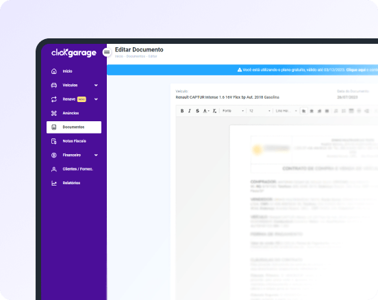 Nosso sistema conta com uma área específica para a criação e o gerenciamento de todos os documentos gerados por sua Loja, como por exemplo, contratos de compra e venda e procurações. Assim, tudo fica centralizado em um só lugar, e você não corre o risco de perdê-los. Além disso, você pode criar modelos e gerar novos documentos baseado neles com apenas 1 clique.