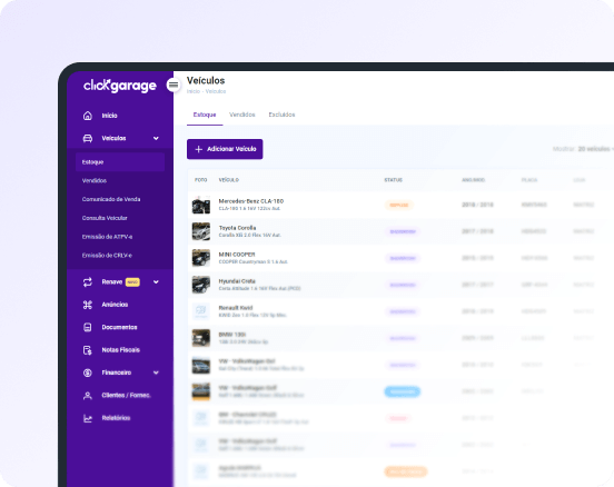 Desenvolvemos o Click Garage pensando em tudo o que você precisa para fazer a gestão de sua loja de veículos